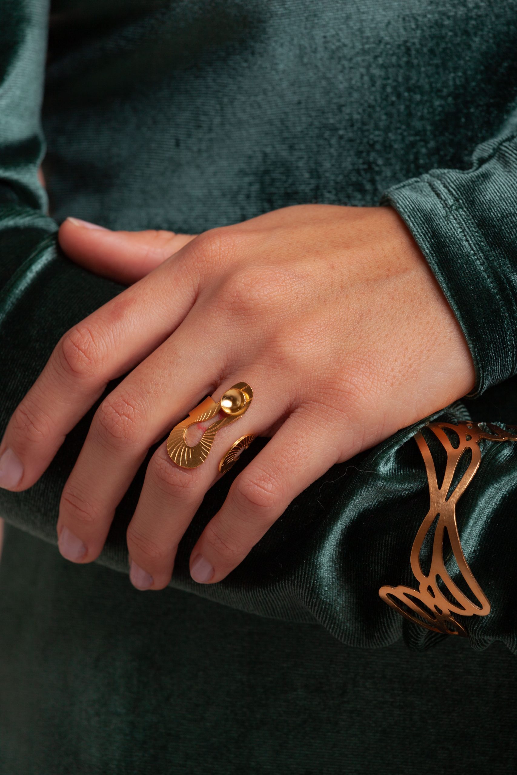 Anillo fabricado a mano en bronce con baño de oro.