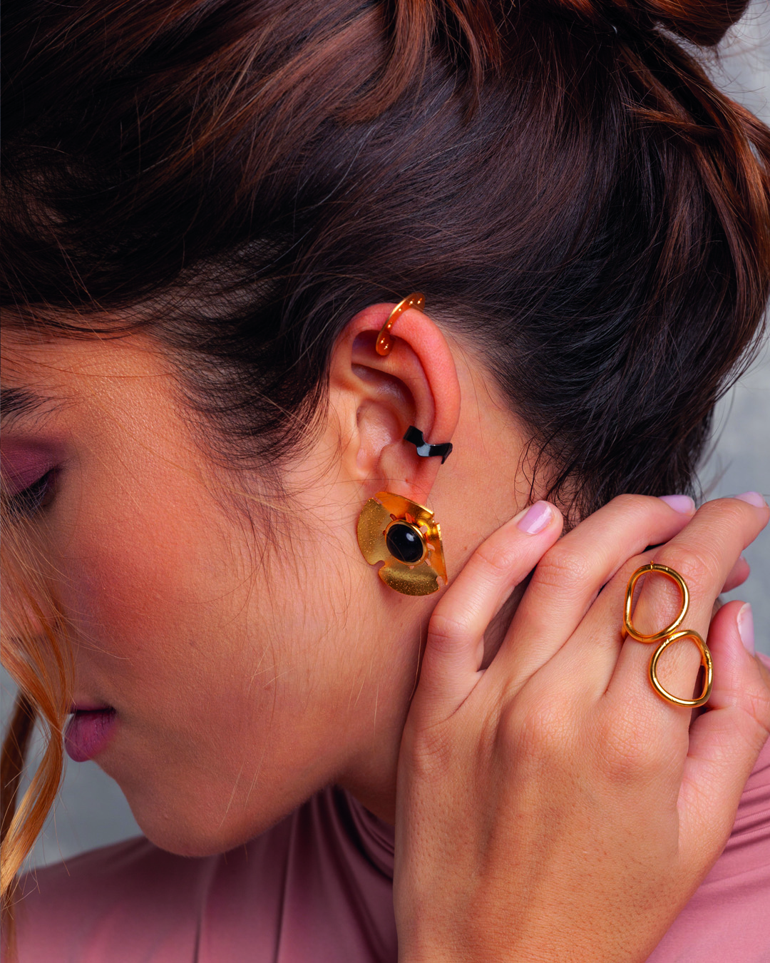 Anillo fabricado a mano en bronce con baño de oro.