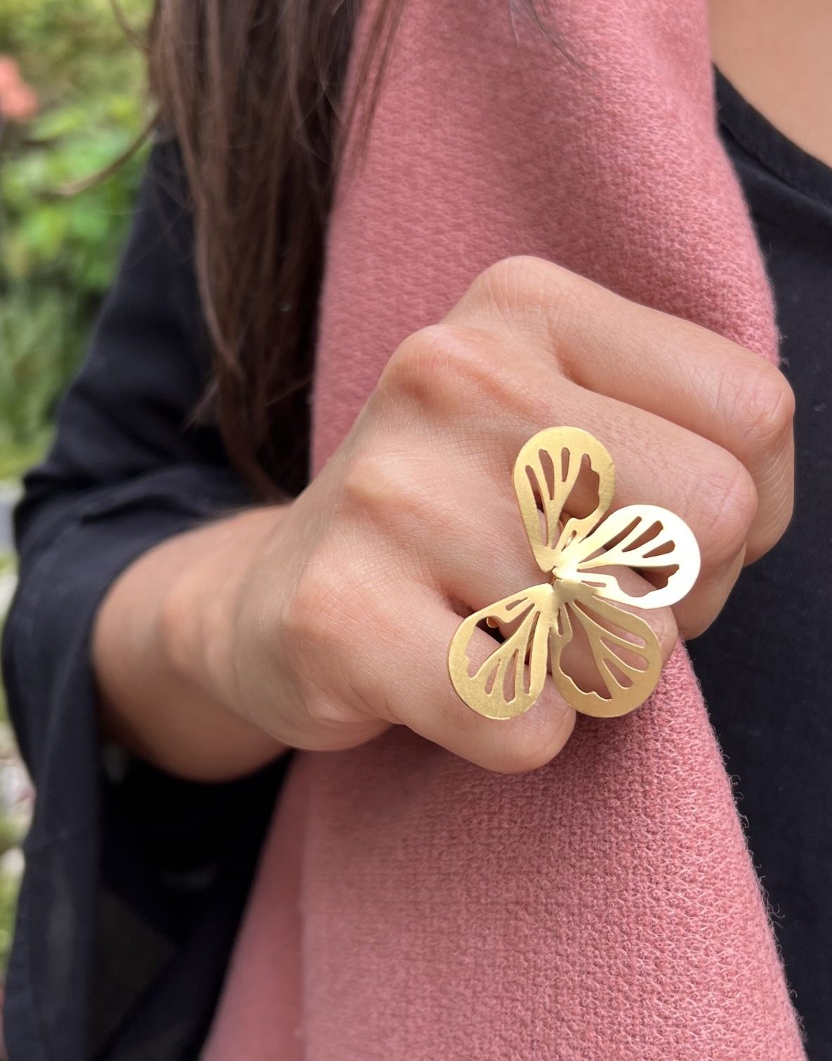 Anillo fabricado a mano en bronce con baño de oro.