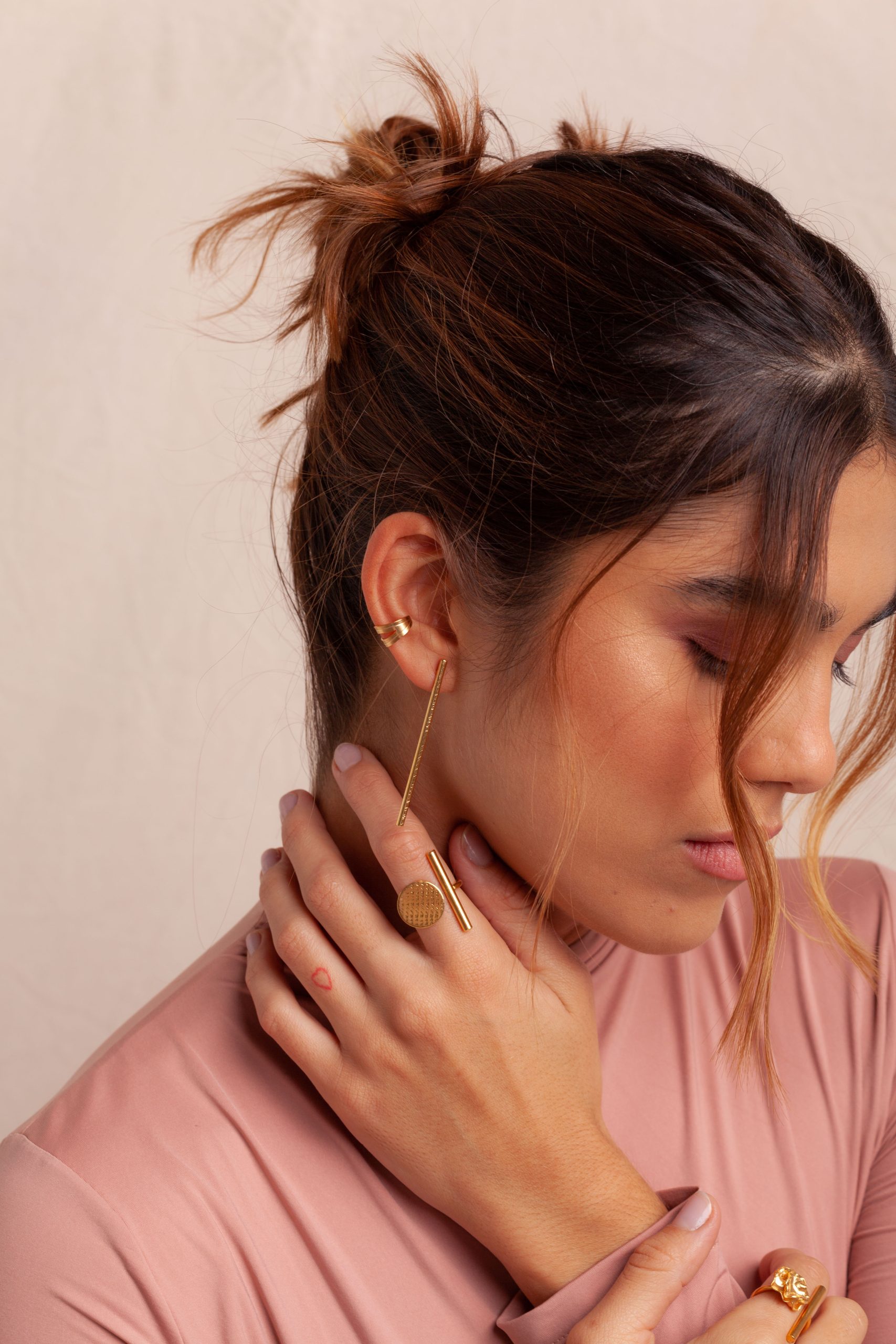 Aretes fabricados a mano en bronce con baño de oro.